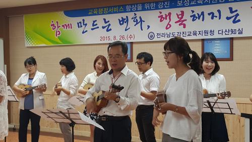 ¸ÅÁÖ ¸ñ¿äÀÏ 7½Ã, ´ëºÎºÐÀÇ Á÷¿øÀÌ Åð±ÙÇÑ °­Áø±³À°Áö¿øÃ»Àº 3Ãþ ´Ù»êò±½Ç¿¡¼­ Èê·¯³ª¿À´Â °æÄèÇÑ Çö¾Ç±â ¼Ò¸®·Î °¡µæ ä¿öÁø´Ù. ¹Ù·Î ±³ÇлóÀå µ¿¾Æ¸®, ¡®À½¾Ç ¼Òdz¡¯ÀÇ ¿ìÄð·¼·¹ ¿¬ÁÖ ¼Ò¸®´Ù.