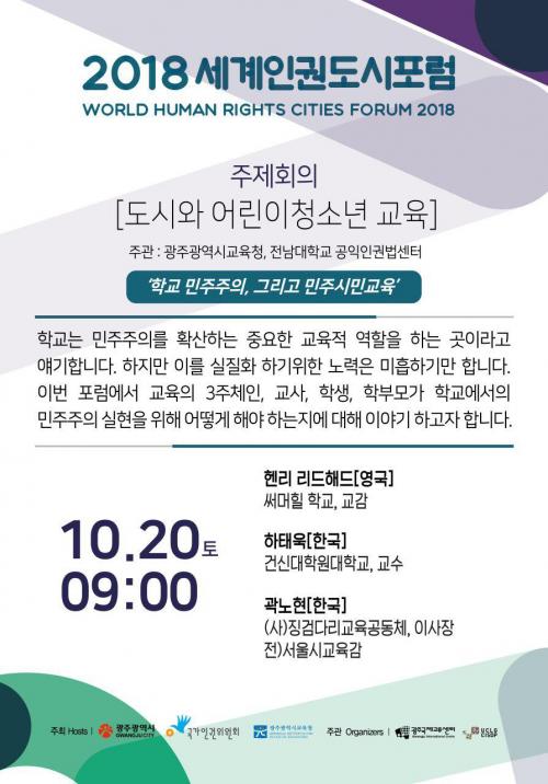 ±¤ÁÖ±¤¿ª½Ã±³À°Ã»(±³À°°¨ ÀåÈÖ±¹)ÀÌ 20ÀÏ(Åä) ±è´ëÁßÄÁº¥¼Ç¼¾ÅÍ¿¡¼­ ¡®Çб³¹ÎÁÖÁÖÀÇ¿Í ¹ÎÁֽùα³À°¡¯À» ÁÖÁ¦·Î ±¹Á¦Æ÷·³À» °³ÃÖÇÑ´Ù.