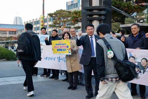 ÀÌÁ¤¼± ±¤Áֽñ³À°°¨Àº ´ëÇмöÇдɷ½ÃÇèÀÌ Ä¡·¯Áö´Â 13ÀÏ ±¤ÁÖ±¤¿ª½Ã±³À°Ã» 26Áö±¸ Á¦21½ÃÇèÀåÀÎ ±¤ÁÖ ¼­±¸ ¼­¼®°íµîÇб³ ¾Õ¿¡¼­ ½ÃÇèÀåÀ¸·Î µé¾î°¡´Â ¼öÇè»ýµéÀ» °Ý·ÁÇß´Ù. ÀÌ ±³À°°¨Àº "±ä ½Ã°£ ²ÞÀ» ÇâÇØ ´Þ·Á¿Â ¿ì¸® ÇлýµéÀÌ ÃÖ¼±ÀÇ °á°ú¸¦ ¾ò±æ ¹Ù¶õ´Ù"¸ç "½ÃÇèÀÌ ³¡³ª´Â ¼ø°£±îÁö ÇлýµéÀÌ ºÒÆíÇÔ¾øÀÌ ¾ÈÁ¤ÀûÀ¸·Î ½ÃÇè¿¡ ÀÓÇÒ ¼ö ÀÖµµ·Ï Áö¿øÇϰڴÙ"°í ¹àÇû´Ù.