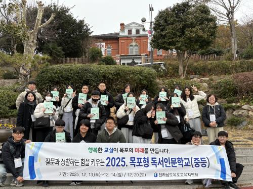 Àü¶ó³²µµ¸ñÆ÷±³À°Áö¿øÃ»(±³À°Àå Á¤´ö¿ø)Àº 2025³â 12¿ù 13ÀϺÎÅÍ 3Àϰ£ °ü³» ÁßÇлýÀ» ´ë»óÀ¸·Î ¡®2025. ¸ñÆ÷Çü µ¶¼­Àι®Çб³¡¯¸¦ ¿î¿µÇÏ¿´´Ù. À̹ø µ¶¼­Àι®Çб³´Â ¸ñÆ÷ Ãâ½Å Çѱ¹ ´ëÇ¥ ±ØÀÛ°¡ Â÷¹ü¼®ÀÇ Èñ°î ¡º¿Á´Ü¾î!¡»¸¦ ÁÖÁ¦µµ¼­·Î ¼±Á¤ÇÏ¿©, Áö¿ª ¹®Çаú ±ÙÇö´ë»ç¸¦ À¶ÇÕÇÑ ÇöÀå Á᫐ Àι®±³À° ÇÁ·Î±×·¥À¸·Î ÁøÇàµÇ¾ú´Ù. ±¸Ã¼ÀûÀ¸·Î µ¶¼­–ÇöÀå´ä»ç–Åä·Ð–âÀÛ–½ÇõÀ¸·Î À̾îÁö´Â ±³À°°úÁ¤À» ÅëÇØ ÇлýµéÀÌ Áö¿ªÀÇ ¿ª»ç¿Í ¹®È­¸¦ ±íÀÌ ÀÌÇØÇϰí, ¹ÎÁֽùÎÀ¸·Î¼­ÀÇ °¨¼ö¼º°ú °øµ¿Ã¼ ÀǽÄÀ» ±â¸£µµ·Ï ±âȹµÇ¾ú´Ù.