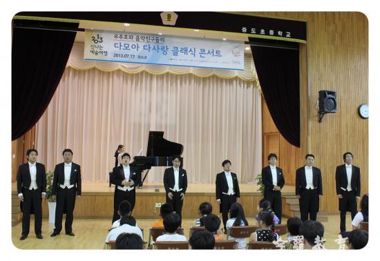 ÁõµµÃʵîÇб³(±³Àå ±è¿ë´ö)Àº Áö³ 17ÀÏ(¼ö) Çѱ¹¹®È¿¹¼úȸ°ü¿¬ÇÕȸ°¡ ÁÖ°üÇÏ´Â ¡¸2013. ½Å³ª´Â ¿¹¼ú¿©Çà ¿ìÁÖÈ£¿Í À½¾ÇÄ£±¸µéÀÇ ´Ù¸ð¾Æ ´Ù»ç¶û Ŭ·¡½Ä ÄܼƮ¡¹¸¦ °ü³» ±â°üÀå, ÁõµµÁß Çлý, Çкθð, Áö¿ªÁֹΠ200¸íÀ» ÃÊ´ë µÈ °¡¿îµ¥ ÁõµµÃʵîÇб³Ã¼À°°ü¿¡¼ ¼º´ëÇÏ°Ô ¿·È´Ù.