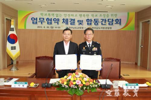 Àü¶ó³²µµ±³À°Ã»(±³À°°¨ À常ä)Àº 26ÀÏ ¿ÀÈÄ 2½Ã µµ±³À°Ã» 8Ãþ ÁßȸÀǽǿ¡¼ Àü³²Áö¹æ°æÂûû°ú Çб³Æø·Â¿¹¹æ Ȱµ¿ÀÇ À¯±âÀû Çù·ÂüÁ¦ ±¸ÃàÀ» À§ÇÑ ¾÷¹«Çù¾àÀ» ü°áÇÏ¿´´Ù. À̳¯ Çù¾à½Ä¿¡´Â Àü¶ó³²µµ±³À°Ã»¿¡¼ À常ä±³À°°¨À» ºñ·ÔÇÑ µµ±³À°Ã» °£ºÎµé°ú 22°³ Áö¿ª±³À°Ã» ±³À°ÀåµéÀÌ Âü¼®ÇÏ¿´À¸¸ç, Àü³²Áö¹æ°æÂûû¿¡¼´Â Àü¼®Á¾ ûÀå°ú °æÂûû °£ºÎµéÀ» ºñ·ÔÇÑ 21°³ ½Ã ․ ±º °æÂû¼ÀåµéÀÌ °¢°¢ ¹è¼®Çß´Ù.