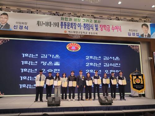 ƯÈ÷ 2025³â 1¿ù 10ÀÏ ¿©¼öÈ­¾ç°íµîÇб³ Ãѵ¿¹®È¸Àå ÀÌ¡¤ÃëÀӽĿ¡¼­´Â 1, 2Çгâ ÀçÇлý Áß ¼±¹ßµÈ 10¸í¿¡°Ô °¢ 100¸¸ ¿ø¾¿, ÃÑ 1,000¸¸ ¿øÀÇ ÀåÇбÝÀ» ¼ö¿©ÇÏ¿© ÈĹèµé¿¡°Ô ½ÇÁúÀûÀÎ µµ¿ò°ú µû¶æÇÑ °Ý·Á¸¦ ÀüÇÏ¿´´Ù.