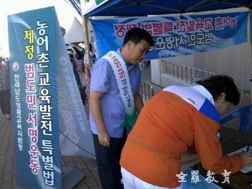 ¿µ±¤±³À°Áö¿øÃ»(±³À°Àå ±è°ü¼ö)¿¡¼­´Â Áö³­ 4Àϰú 5ÀÏ ÀÌÆ² µ¿¾È ¿µ±¤ ½ºÆ÷µð¿ò¿¡¼­ ¿­¸° ¡®¿µ±¤±º¹ÎÀÇ ³¯¡¯ Çà»ç¿¡ ³ó¡¤¾îÃÌ ±³À°¹ßÀü Ưº°¹ý Á¦Á¤À» À§ÇÑ ¼­¸í¿îµ¿À» Àü°³Çß´Ù. ±º¹ÎÀÇ ³¯ Çà»ç¿¡ Âü¼®Çϱâ À§ÇØ ¸ðÀÎ ¼ö¸¹Àº ±º¹ÎµéÀº ¿ì¸® Áö¿ª Çб³¸¦ »ì¸®°í, ³ó¡¤¾îÃÌ ±³À°À» Á¤»óÈ­ÇÏÀÚ´Â ¼­¸í ¿îµ¿¿¡ Àû±Ø µ¿ÂüÇϸç, ¶ß°Å¿î È£ÀÀ°ú °Ý·Á¸¦ ¾Æ³¢Áö ¾Ê¾Ò´Ù.