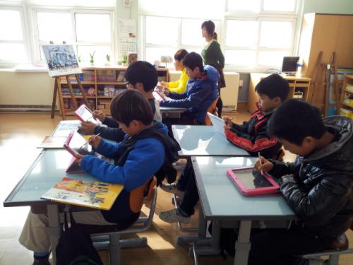 ¿ÈõÃÊ ÇлýµéÀÌ ¼Õ¿¡ ¹«¾ð°¡¸¦ µé°í ¼ö¾÷Áغñ¿¡ ºÐÁÖÇÏ´Ù. ÅÂºí¸´ PC¸¦ µé°í ¹ßÇ¥Áغñ¸¦ ÇÏ´Â ¾ÆÀ̵é, ¿À´ÃÀº È»ó ¼ö¾÷ÀÌ ÀÖ´Â ³¯ÀÌ´Ù.¿ÈõÃʵîÇб³(±³Àå Àӱݼø) 5, 6Çгâ ÇлýµéÀº Áö³ 24ÀÏ ¹Ì¼ú Àü¹®°¡¿Í ÇÔ²² °øºÎÇϰí, ¸Ö¸® ±¤ÁÖ¿¡¼ °øºÎÇÏ´Â ºÀ¼±ÃʵîÇб³ Ä£±¸µé°ú ÇÔ²² ¼ö¾÷À» À̾´Ù. ÀÌ·¯ÇÑ ¼ö¾÷À» °¡´ÉÇÏ°Ô ÇØÁØ °ÍÀº ¹Ù·Î ÅÂºí¸´ PC, °¶·°½Ã ³ëÆ® 10.1 ±â±â¸¦ ÀÌ¿ëÇÑ È»ó¼ö¾÷ÀÌ´Ù.