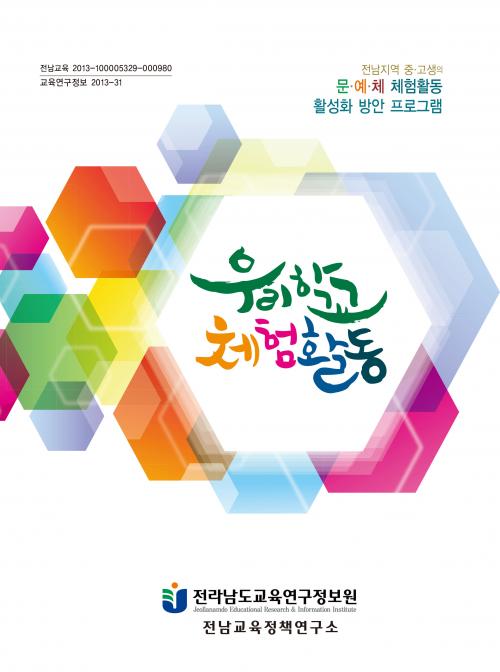Àü¶ó³²µµ±³À°Ã»Àº ÇлýµéÀÇ ¿¹¼úÀû °¨¼º°ú ¹®ÈÀûÀÎ »ó»ó·Â ÁõÁøÀ» ÅëÇØ ¹à°í °ÇÀüÇÑ °¡Ä¡°ü°ú ¹Ù¸¥ »ýȰ½À°üÀ» Çü¼ºÇÒ ¼ö ÀÖµµ·Ï 2013³â ÃÊ¿¡ ¡®Àü³²Áö¿ª Áß°í»ý ¹®‧¿¹‧ü üÇèȰµ¿ Ȱ¼ºÈ ¹æ¾È¡¯À̶ó´Â Á¤Ã¥°úÁ¦¸¦ ¼³Á¤ÇÑ ÈÄ Àü³² 22°³ ½Ã‧±º Áö¿ªº° ¹®‧¿¹‧ü ÇÁ·Î±×·¥°ú ÀÚ¿ø ÇöȲÀ» ¼ö°³¿ù µ¿¾È Á¶»çÇÏ¿© Çлý ¹®‧¿¹‧ü üÇèȰµ¿¿¡ ¸Â´Â À¯¿ëÇÑ ÀڷḦ ¼±º°‧Á¤¸®ÇÏ¿´´Ù.