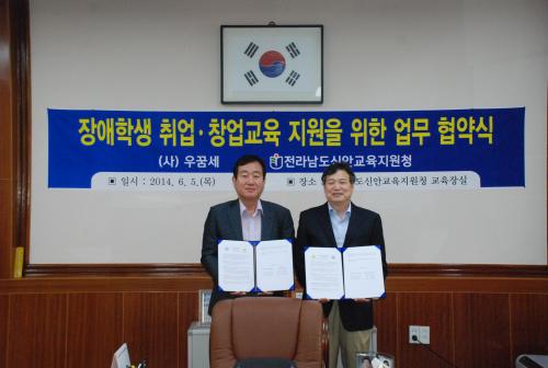 Àü¶ó³²µµ½Å¾È±³À°Áö¿øÃ»(±³À°Àå ±èÁ¦Çü)¿¡¼´Â ½Å¾È °ü³» Àå¾ÖÇлý Ãë¾÷․â¾÷±³À° Áö¿øÀ» À§ÇØ »çȸÀû ±â¾÷ÀÎ »ç´Ü¹ýÀÎ ¡®¿ì¸®°¡²Þ²Ù´Â¼¼»ó¡¯°ú ¾÷¹«Çù¾àÀ» ü°áÇÏ¿´´Ù.