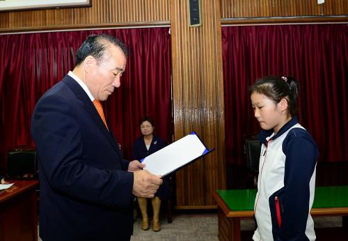 ÀåÈÖ±¹ ±¤ÁÖ±¤¿ª½Ã±³À°°¨Àº 6¿ù 13ÀÏ(±Ý) ¿ÀÀü ½Ã±³À°Ã» »óȲ½Ç¿¡¼ 2013³âµµ ±¹¹Î±³À°¹ßÀü À¯°øÀÚ Àü³²¿©ÀÚ»ó¾÷°íµîÇб³ 5±Þ °Ãµ¼ö(»çÁø À§ÂÊ) µî 4¸í¿¡°Ô ±³À°ºÎÀå°ü ǥâÀåÀ» ±¹¹Î±³À°¹ßÀü À¯°øÀÚ ÃÖ±âä(Çб³¹ýÀÎ µ¿¸íÇпø) ÀÌ»çÀå¿¡°Ô ±¹¹ÎÈÆÀå µ¿¹éÀåÀ» Àü¼öÇß´Ù.