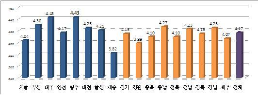 ±¤ÁÖ±¤¿ª½Ã±³À°Ã»(±³À°°¨ ÀåÈÖ±¹)Àº ±³À°ºÎ Á¤Ã¥ÁßÁ¡¿¬±¸¼ÒÀÎ Çѱ¹Áö¹æ±³À°¿¬±¸¼Ò¿¡¼ ½Ç½ÃÇÑ ¡¸2013³â ÄÁ¼³ÆÃÀåÇÐ ÀÇ·ÚÀÎ ¸¸Á·µµ Á¶»ç¡¹°á°ú, Á¾ÇÕÆòÁ¡ 4.43Á¡À¸·Î ´ë±¸½Ã±³À°Ã»°ú ÇÔ²² Àü±¹ 1À§ÀÇ ¼º°ú¸¦ °Å¾çÇÏ¿´´Ù.