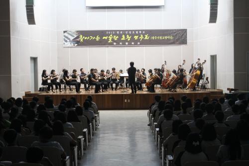 µî±³½Ã°£°ú Á¡½É½Ã°£¿¡´Â Ŭ·¡½ÄÀ½¾ÇÀÌ È帣°Ô Çϰí ÀÖÀ¸¸ç ¿ÀÄɽºÆ®¶ó¿î¿µÀ» ÅëÇÏ¿© ÇлýµéÀÇ °¨¼º°ú ÀμºÀÌ ÇÔ¾çµÇµµ·Ï Çϰí ÀÖ´Ù. ¾Æ¿ï·¯ ±×µéÀÌ ¹è¿ì°í ÀÍÈù ½Ç·ÂÀ¸·Î º´¿ø, º¹Áö°ü µîÀ» ã¾Æ´Ù´Ï¸ç 4ȸ° Èú¸µÄܼƮ¸¦ ¿¾î Áö¿ª»çȸ¿Í ÇÔ²²ÇÏ´Â Çб³·Îµµ °Åµì³ª°í ÀÖ´Ù. ÀÌ ¿Ü¿¡µµ ±³»ç¿Í ÇлýÀ¸·Î ±¸¼ºµÈ ¹êµåµ¿¾Æ¸®µéÀº ¸ÅÇб⠵帲ÄܼƮ¸¦ ¿¾î ÇлýµéÀÌ ½ÃÇ轺Ʈ·¹½º¸¦ ½Ã¿øÇÏ°Ô ³¯·Á º¸³¾ ¼ö ÀÖµµ·Ï Çϰí ÀÖ´Ù.