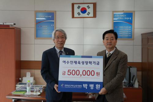 ¹Úº´È¯ ¿©¼ö±³À°Áö¿øÃ» ½Ã¼³´ã´çÀÌ Áö³ÇØ ¿©¼ö±³À° ¹ßÀü¿¡ ±â¿©ÇÑ °ø·Î·Î ¼ö»óÇÑ ¿©¼ö±³À°´ë»ó ½Ã»ó±Ý 50¸¸¿ø Àü¾×À» ¿©¼ö ÀÎÀçÀ°¼º¿¡ ½á ´Þ¶ó¸ç ¿©¼öÀÎÀçÀ°¼ºÀåÇбâ±Ý¿¡ 28ÀÏ ±âŹÇß´Ù.