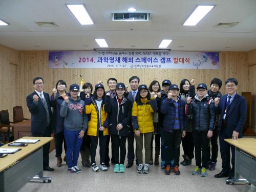 Àü¶ó³²µµÀåÈï±³À°Áö¿øÃ»(±³À°Àå ¹ÚºÀ¼ö)Àº 2015. 1. 13.(È)~1. 26.(¿ù)±îÁö 12¹Ú 14ÀÏ µ¿¾È ¹ÌÇ×°ø¿ìÁÖ±¹ NASA·Î Àü±¹ÀÇ °úÇпµÀç 40¿©¸í°ú ÇÔ²² ÀåÈ￵Àç±³À°¿ø Çлý 7¸í(ÃʵîÇлý 4¸í, ÁßÇлý 3¸í)ÀÌ ¡®2014. °úÇпµÀç ¹Ì±¹ NASA ¿ìÁÖ°úÇÐ Ä·ÇÁ¡¯¸¦ ´Ù³à¿Ô´Ù.