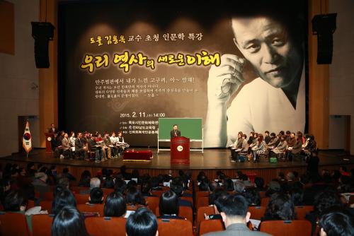 ±¤º¹ 70ÁÖ³âÀ» ¸Â¾Æ, ±³À°°øµ¿Ã¼¸¦ ´ë»óÀ¸·Î ¹Ù¸¥ ¿ª»ç°ü°ú ±³À°°üÀ» ½É¾îÁÖ±â À§ÇØ ¸¶·ÃÇÑ ÀÌ ÀÚ¸®¿¡¼, µµ¿ÃÀº ¡°¿ì¸® ¿ª»çÀÇ »õ·Î¿î ÀÌÇØ¡±¶ó´Â ÁÖÁ¦·Î 2½Ã°£¿¡ °ÉÄ£ °ÀǸ¦ Àü°³ÇØ Âü¼®ÀÚµéÀÇ ¿¶í È£ÀÀÀ» ¾ò¾ú´Ù.