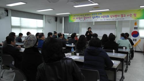 2015³â »ó¹Ý±â 5ȸ Ư° Áß Ã¹ ¹øÂ°·Î ÁøÇàµÈ À̹ø °¿¬È¸´Â ¡®³» ¸¶À½ÀÌ µé¸®´Ï? ½É¸®ÇÐÀÚ ÀÌ¿î¼÷ÀÇ »óó¹ÞÁö ¾Ê°í »ç´Â ¹ý¡¯À̶ó´Â ÁÖÁ¦·Î 40¿© ¸íÀÇ Áö¿ªÁÖ¹ÎÀÌ Âü¿©ÇÑ °¡¿îµ¥ ¼ºÈ²¸®¿¡ °³ÃֵƴÙ.