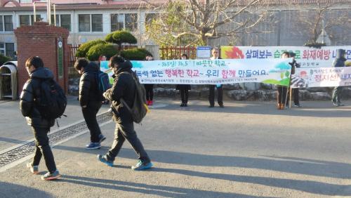 ¹Î¿µ¹æ ±³À°ÀåÀº "°ü³»ÀÇ ¸ðµç ÇлýµéÀÌ °Ç°­Çϰí Áñ°Å¿î Çб³»ýȰÀ» ÇÒ ¼ö ÀÖµµ·Ï À¯°ü±â°ü ¹× ´Üü¿Í Àû±ØÀûÀÎ ÇùÁ¶Ã¼Á¦¸¦ ±¸ÃàÇÏ¿© Çб³ ¾ÈÆÆÀ¸·Î ¾ÈÀüÇÑ È¯°æÀ» Á¶¼ºÇϸç, ÀÌ¿¡ ´ëÇÑ Áö¿ª»çȸÀÇ °ü½ÉÀ» °íÃë½ÃÄÑ ³ª°¥ °Í"À̶ó°í °­Á¶ÇÏ¿´´Ù.