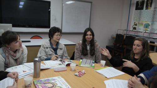 ¿­Á¤À» °®°í Çѱ¹¾î¸¦ ¹è¿ì°í ÀÖ´Â Thomas Andrew Sosnoski(ij³ª´Ù ±¹Àû)¼±»ý´ÔÀº Çѱ¹¾î¸¦ ¹è¿òÀ¸·Î½á Çѱ¹ ÇлýµéÀÇ ÀÔÀåÀ» ÀÌÇØÇÏ°Ô µÇ°í, Çѱ¹¾î¿Í Çѱ¹¹®È­¸¦ ÀÌÇØÇÔÀ¸·Î½á Çлýµé°ú º¸´Ù Ä£±ÙÇÑ ÁÖÁ¦·Î ¼ö¾÷À» ÇÏ°Ô µÇ¾î Çлý Áöµµ¿¡µµ Å« È¿°ú°¡ ÀÖ´Ù°í ¸»Çß´Ù.