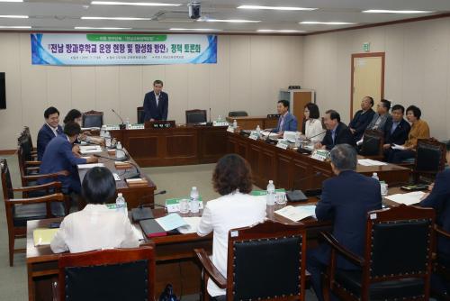 Àü¶ó³²µµÀÇȸ ÀÇ¿ø ¿¬±¸´Üü¡®Àü³²±³À°Á¤Ã¥Æ÷·³(ȸÀå ÇÑÅÃÈñ)¡¯Àº 7ÀÏ ±³À°À§¿øÈ¸ ȸÀǽǿ¡¼¡®Àü³² ¹æ°úÈÄÇб³ ¿î¿µ ÇöȲ ¹× Ȱ¼ºÈ ¹æ¾È¡¯À̶õ ÁÖÁ¦·Î ÇѾƸ§À¯Ä¡¿ø ·ùºÀÀÚ ¿øÀå, ÇлêÃʵîÇб³ ±è¶õ ±³Àå, ÇÔÆò¼ÕºÒÁßÇб³ ÁÖ¿µÈ£ ±³Àå, ±¤¾ç¹é¿î°íµîÇб³ ¹Î¹æ±â ±³°¨, ¸ñÆ÷´ë ¾î¿ï¸²¾ÆÄ«µ¥¹Ì(ÁÖ) ±è¼±Áø ÆÀÀå ¹× Àü¶ó³²µµ±³À°Ã» °ü°èÀÚ 20¿©¸íÀÌ Âü¼®ÇÑ °¡¿îµ¥ Á¤Ã¥Åä·Ðȸ¸¦ °³ÃÖÇß´Ù.
