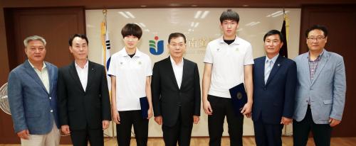 À̳¯ À常ä ±³À°°¨Àº Áö³­ ¡®2015³â ¼¼°è¼±¼ö±Çűǵµ´ëȸ¡¯ 53kg±Þ¿¡ ÃâÀüÇØ ±Ý¸Þ´ÞÀ» ȹµæÇÑ Àӱݺ°(¿©¡¤Àü³²Ã¼À°°í 2Çгâ) ¼±¼ö¿Í ¡®2015³â Á¦8ȸ ¾Æ½Ã¾ÆÃ»¼Ò³âűǵµ¼±¼ö±Ç´ëȸ¡¯ 78kg±Þ¿¡¼­ ±Ý¸Þ´ÞÀ» µý ¹èÀ±¹Î(³²¡¤Àü³²Ã¼À°°í 2Çгâ) ¼±¼ö¿¡°Ô °¢°¢ ÀåÇбÝÀ» Àü´ÞÇß´Ù.