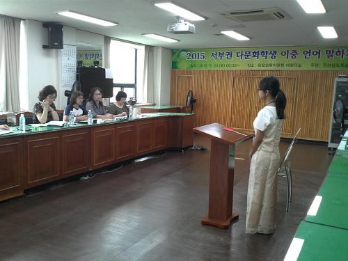 ¡®¼­ºÎ±Ç¿ª ´Ù¹®È­Çлý ÀÌÁß¾ð¾î ¸»Çϱâ´ëȸ¡¯´Â ´Ù¹®È­ÇлýÀÇ ¾ð¾îÀû Àç´ÉÀ» Á¶±â¿¡ ¹ß±¼Çϰí, ÀÌÁß ¾ð¾î ÀÇ»ç¼ÒÅë ´É·ÂÀ» Çâ»ó½ÃÄÑ ²Þ°ú ³¢¸¦ Ű¿ö³ª°¥ ¼ö ÀÖ´Â ±âȸ¸¦ Á¦°øÇϰí Á¦3ȸ Àü±¹ ÀÌÁß¾ð¾î ¸»Çϱâ´ëȸ Àü³² ´ëÇ¥ÇлýÀ» ¼±¹ßÇÏ´Â ÀÚ¸®ÀÌ´Ù.