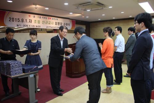 Àü¶ó³²µµ¼øÃµ±³À°Áö¿øÃ»(±³À°Àå ½Å°æ¼ö)Àº 9¿ù 1ÀÏ(È) 16:00 ¼øÃµ±³À°Áö¿øÃ» ´ëȸÀǽǿ¡¼ 2015³â 9¿ù 1ÀÏÀÚ ½Å±Ô±³»ç ÀÓ¸íÀå ¼ö¿©½ÄÀ» °¡Á³´Ù. À̹ø ½Å±Ô ¹ß·ÉµÈ ±³»ç´Â Ãʵî 39¸í(Ãʵ»ç 38¸í, ¿µ¾ç±³»ç 1¸í)À¸·Î ½Å±Ô±³»çµéÀº °øÁ÷ÀÚ ¼±¼¸¦ ÇÏ°í ½Å°æ¼ö ±³À°ÀåÀ¸·ÎºÎÅÍ Á÷Á¢ ÀÓ¸íÀå°ú ÃàÇÏÀÇ ²É´Ù¹ßÀ» ¼ö¿©¹Þ¾Ò´Ù.
