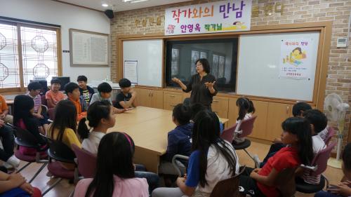 µÎ ¹øÂ° Çà»ç·Î Çлýµé°ú ¡®¶È¶È¶È, µ¿È­°¡ ³î·¯ ¿Ô¾î¿ä¡¯ÀÇ ¾È¿µ¿Á ÀÛ°¡¿ÍÀÇ ¸¸³²ÀÌ µµ¼­½Ç¿¡¼­ ÀÌ·ç¾îÁ³´Ù. ÇлýµéÀº ÀÛ°¡¿ÍÀÇ ¸¸³² ÀÌÀü¿¡ ¹Ì¸® ÀÐÀº Ã¥À» µÇµ¹¾Æº¸¸ç ´Ù¾çÇÑ Áú¹®À» ÇÏ¿´°í µµ¼­°üÀº ¼ø½Ä°£¿¡ Ȱ¹ßÇÑ ´ëÈ­ÀÇ ÀåÀ¸·Î ¹Ù²î¾ú´Ù. ¾È¿µ¿Á ÀÛ°¡¿Í ÇлýµéÀº Ã¥À» ºñ·ÔÇÑ ²Þ°ú Èñ¸ÁÀ» ´ãÀº À̾߱â·Î ¼­·Î ¹Ì¼Ò ÁöÀ¸¸ç ´ÙÀ½À» ±â¾àÇÏ¿´´Ù. ¸¶Áö¸·À¸·Î °¢ Çб޿¡¼­ Ư»ö ÀÖ´Â µ¶¼­ Åä·ÐÀ» ÁøÇàÇÏ¿´´Ù.