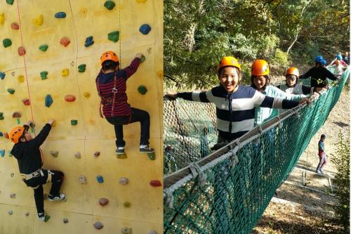 Á¡½É ½Ä»ç ÈÄ¿¡´Â ÆÀ¿öÅ©¸¦ ³ôÀÌ´Â ´Ù¾çÇÑ È°µ¿À» ÇÏ¿´´Ù. ¸ðÇèȰµ¿Àå¿¡¼ ½ºÆ÷Ã÷Ŭ¶óÀ̹ÖÀ» ÇÒ ¶§´Â ¸ö¿¡ ·ÎÇÁ¸¦ ¸Å´Þ°í 8m ³ôÀÌÀÇ ¾Ïº®À» È¥ÀÚ ÈûÀ¸·Î ±â¾î¿À¸£¸ç Àγ»½É°ú ±Ø±â·ÂÀ» ÇÔ¾çÇÏ¿´´Ù. °´ç¿¡¼´Â ¿ôÀ½Èú¸µÀ» ÅëÇØ È£±â½ÉÀ» À¯¹ßÇϰí âÀǷ°ú Á¤½Å °Ç°À» µ½´Â Ȱµ¿À» ÇÏ¿´´Ù. ¿îµ¿Àå¿¡¼´Â Ųº¼À̶ó´Â Å« °øÀ» °¡Áö°í ÆÀÇùµ¿°ÔÀÓÀ» ÇÏ¸é¼ Ã¼·Â ´Ü·Ã°ú ¸®´õÀÇ ¿ªÇÒ, µ¿·áÀǽÄ, Çùµ¿½ÉÀ» ±æ·¶´Ù.