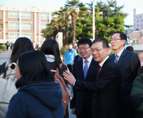 À̳¯ ¿ÀÀü 7½Ã 30ºÐ²² ¸ñÆ÷¿©°í¸¦ ¹æ¹®ÇÑ Àå ±³À°°¨Àº ¼±¹èµéÀ» ÀÀ¿øÇÏ´Â ÀçÇлý°ú ÇÔ²² ±³¹® ¾Õ¿¡¼­ ¼öÇè»ýµéÀ» ÀÀ¿øÇß´Ù.
