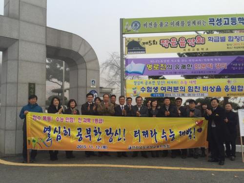 °î¼º±³À°Áö¿øÃ»(±³À°Àå ¹ÚÂùÁÖ)Àº 11¿ù 12ÀÏ 2016Çг⵵ ´ëÇмöÇдɷ½ÃÇè Àå¼ÒÀÎ °î¼º°íµîÇб³ Á¤¹®¿¡¼­ ¾ÆÄ§ ÀÏÂïºÎÅÍ ½ÃÇèÀ» Ä¡¸£±â À§ÇØ µµÂøÇÏ´Â ¼öÇè»ý, Çкθ𸦠°Ý·ÁÇÏ¿´´Ù. À̳¯ Çà»ç¿¡´Â ¹ÚÂùÁÖ ±³À°Àå, °î¼º±³À°Áö¿øÃ» Á÷¿ø, À¯±Ù±â °î¼º±º¼ö, °î¼º±ºÃ» Á÷¿ø, Á¶»ó·¡ Àü³²µµÀÇȸ ¿¹»ê°á»êƯº°À§¿øÈ¸ À§¿øÀåÀÌ Âü¿©ÇÏ¿© ¼öÇè»ýµéÀÇ ¼ö´É ´ë¹ÚÀ» ±â¿øÇÏ¿´´Ù.