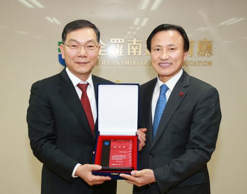 Àü¶ó³²µµ±³À°Ã»(±³À°°¨ À常ä)Àº Á¶´ÞûÀ¸·ÎºÎÅÍ 2015³âµµ ³ì»öÁ¦Ç° ±¸¸Å ¿ì¼ö±â°üÀ¸·Î ¼±Á¤µÇ¾î 7ÀÏ º»Ã» ±³À°°¨½Ç¿¡¼ °¨»çÆÐ¸¦ ¹Þ¾Ò´Ù.