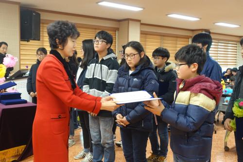 À̹ø ¼ö·á½Ä¿¡¼ ÃʵîÇб³ 5Çгâ 14¸í, 6Çгâ 13¸í ÃÑ 27¸íÀº 1³â°£ÀÇ ±³À°°úÁ¤À» À̼öÇÏ¿© ¼ö·áÁõÀ» ¹Þ¾ÒÀ¸¸ç ÀÌÁß ¿ì¼öÇÑ ¼ºÀûÀ» °ÅµÐ Çлý¿¡°Ô´Â ±³À°°¨ ǥâ(ÃÊ 5¡¤6³â 2¸í)°ú ±³À°Àå»ó(ÃÊ6 5¸í, ÃÊ5 5¸í)À» ½Ã»óÇÏ¿´´Ù.