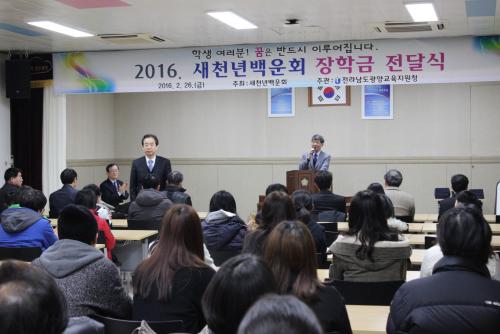 ±¤¾çÁö¿ª Ãâ½Å Àç°æ Çâ¿ìȸ ¸ðÀÓÀÎ »õõ³â¹é¿îȸ´Â 2002³â ÅÂdz ¡®¸Å¹Ì¡¯·Î ÀÎÇÑ ¼öÇØ ´ç½Ã ¼öÀçÀÇ¿¬±Ý(1,000¸¸¿ø) ±âŹÀ» ½ÃÀÛÀ¸·Î °íÇâÀ» À§ÇØ º¸¶÷ ÀÖ´Â »ç¾÷À» ÇØº¸Àڴ ȸ¿øµéÀÇ ¶æÀ» ¸ð¾Æ ÀåÇлç¾÷À» ½ÃÀÛÇÏ°Ô µÇ¾ú´Âµ¥ 2006³â 1¿ù, 28¸íÀÇ ±¤¾çÁö¿ª Çлýµé¿¡°Ô 1,000¸¸¿øÀÇ ÀåÇбÝÀ» Áö±ÞÇÑ °ÍÀ¸·Î ½ÃÀÛÇÏ¿© ¸Å³â ÀåÇлç¾÷À» ÆîÃÄ ¿À°í ÀÖ´Ù.