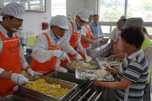 À̳¯ µ¿ºÎ±³À°Áö¿øÃ» ÀÌÁ¾½Ä ±³À°Àå°ú Á÷¿ø µî 10¿©¸íÀº È¿·É³ëÀκ¹ÁöŸ¿îÀ» ¹æ¹®ÇØ ¸ÃÀº ¹Ù Ȱµ¿¿¡ ´ëÇÑ »çÀü±³À°À» ¹ÞÀº ÈÄ 600¿©¸íÀÇ ³ëÀκ¹ÁöŸ¿î ¾î¸£½Åµé²² 4½Ã°£ µ¿¾È ±Þ½ÄÀ» ¹è½ÄÇß´Ù. ½Ä»ç ÈÄ¿¡´Â ÀÜ¹Ý Á¤¸®, ½ÄŹ û¼Ò, ½Ä±â ¼Òµ¶ µîÀ¸·Î ±¸½½¶¡À» Èê·È´Ù.