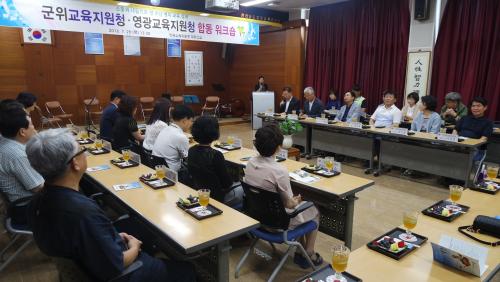 Àü¶ó³²µµ¿µ±¤±³À°Áö¿øÃ»(±³À°Àå ±è¿µÇü)°ú °æ»óºÏµµ±ºÀ§±³À°Ã»(±³À°Àå ±Ç¼ø¹Ú)Àº 7¿ù 28ÀÏ(¸ñ) Àü¶ó³²µµ¿µ±¤±³À°Áö¿øÃ» ´ëȸÀǽǿ¡¼ ¾ç ±â°üÀÇ °ü°èÀÚ 50¿©¸íÀÌ Âü¼®ÇÑ °¡¿îµ¥ ¿µÈ£³² ±³À° ±³·ù »óÈ£Çù·ÂÀ» À§ÇÑ ÇÕµ¿ ¿öÅ©¼óÀ» °³ÃÖÇÏ¿´´Ù.