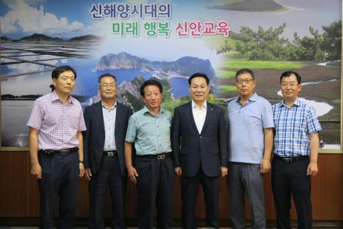 ½Å¾È±³À°Áö¿øÃ»(±³À°Àå Á¤Àλó)Àº Áö³ 22ÀÏ(¿ù) 11:00 ½Å¾È±³À°Áö¿øÃ» ±³À°Àå½Ç¿¡¼ 2016³âµµ 8¿ù¸» Á¤³âÅðÁ÷±³¿ø ¹× ¸í¿¹ÅðÁ÷±³¿ø 3¸í¿¡ ´ëÇÑ °£´ãȸ ¹× ¼Û°øÆÐ Àü´Þ½ÄÀ» Àü Á÷¿øµéÀÌ Âü¼®ÇÑ °¡¿îµ¥ °¡Á³´Ù.