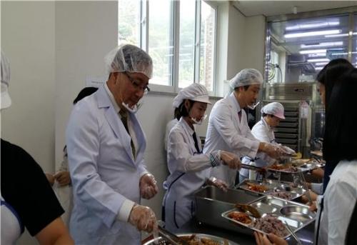 ±èÁ¾³² ±³À°ÀåÀ» ºñ·ÔÇØ ÇØ³²Á¦ÀÏÁßÇб³ ¿À½Â±¹ Çб³ÀåÀÌ ÇÔ²² ÇлýµéÀÇ ¹è½Ä¿¡ Á÷Á¢ Âü¿©Çϰí, ±Þ½ÄÇöÀåÀÇ ÀǰßÀ» ûÃëÇÏ¸ç ±Þ½Ä°ü°èÀÚÀÇ ³ë°í °Ý·Á¿Í ÇÔ²² ½ÄÁßµ¶ ¿¹¹æÀ» À§ÇØ ´çºÐ°£ °¡¿­Á¶¸® ½Äǰ Á¦°øÀ» ¿øÄ¢À¸·Î ÃÖ¼±À» ´ÙÇØ ÁÙ °ÍÀ» ´çºÎÇÏ¿´´Ù.