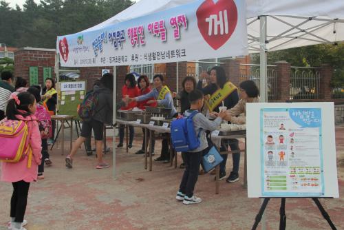 ÀÓÀÚÃʵîÇб³ Çлýȸ¿Í Çкθðȸ¿¡¼´Â °ø¸ð»ç¾÷ÀÎ ½Ä»ýȰ±³À° Àü³² ³×Æ®¿öÅ© Áö¿øÀ¸·Î À̸¥ ¾ÆÄ§ ½Ä»ýȰ°ü¿¡¼ ºÎ¸ð´Ô°ú ¼±»ý´Ô, Çлýȸ ÀÓ¿øµéÀÌ ¿ì¸® ½Ò°ú °¢Á¾ ¾ßä·Î ÄŹä°ú ½ÄÇý¸¦ ¸¸µé¾î, Àü±³ Çлý ¹× ±³Á÷¿ø, µî±·±æÀ» µµ¿ÍÁÖ´Â Çкθð, ÁֹΠµî 110¸íÀÇ ¿¶í È£ÀÀ¼Ó¿¡ ¾ÆÄ§¹ä¿¡ ´ëÇÑ È«º¸¸¦ Çϰí, ¾ÆÄ§ ½Ä»ç´ë¿ëÀ¸·Î ÄŹä°ú ½ÄÇý¸¦ ½Ã½ÄÇÏ¸ç ¾ÆÄ§¹äÀÇ Á߿伺À» Çлý ½º½º·Î ´À³¢°í ½ÇõÇÏ´Â ÀåÀ» ¿¾ú´Ù.