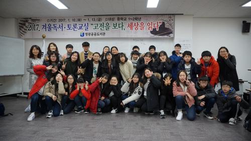 ¿µ±¤°ø°øµµ¼°ü¿¡¼´Â ¿µ±¤ °ü³» ÁßÇлý 30¿©¸íÀ» ´ë»óÀ¸·Î 1¿ù 10ÀϺÎÅÍ 13ÀϱîÁö 4Àϰ£ °Ü¿ï µ¶¼¡¤Åä·Ð±³½ÇÀ» ¿î¿µÇÏ¿´´Ù. ¡®°íÀüÀ» º¸´Ù, ¼¼»óÀ» Àд١¯¶ó´Â ÁÖÁ¦·Î ¿î¿µµÈ Åä·Ð±³½Ç¿¡¼´Â ¼ö·áÀÚ Àü¿ø¿¡°Ô ¼ö·áÁõ°ú ±â³äǰÀ» ¼ö¿©ÇÏ¿´°í, ¿ì¼ö Çлý 8¸íÀ» ¼±Á¤ÇÏ¿© Àü¶ó³²µµ±³À°°¨»ó, ±¹¸³¾î¸°ÀÌû¼Ò³âµµ¼°üÀå»ó, Àü¶ó³²µµ¿µ±¤±³À°Áö¿øÃ»±³À°Àå»ó µîÀ» ½Ã»óÇÏ¿´´Ù.