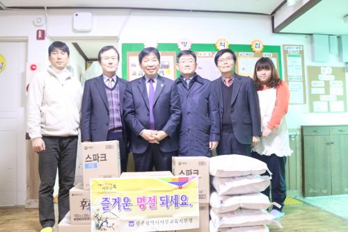 ¼ºÎ±³À°Áö¿øÃ» ±è±¤Çö ±³À°ÀåÀ» ºñ·ÔÇÑ ±³Á÷¿ø 10¸íÀº À̳¯ ÁßÁõÁöüÀå¾ÖÀεéÀÌ »ýȰÇÏ´Â ¡®Èñ¸ÁÀÇ Áý¡¯(¼±¸ ÈÁ¤µ¿)°ú 65¼¼ ÀÌ»óÀÇ ¿ä¾ç³ëÀεéÀÌ »ýȰÇÏ´Â ¡®¸íÀº³ëÀÎÀü¹®¿ä¾ç¿ø¡¯(±¤»ê±¸ ´ö¸²µ¿)À» ã¾Ò´Ù. ±³Á÷¿øµéÀº °ÅÁÖ ½Ã¹Îµé¿¡°Ô À§¹®Ç°À» Àü´ÞÇÏ°í ½Ã¼³°ü°èÀڵ鿡°Ô À§·Î¿Í °Ý·ÁÀÇ ¸»À» ÀüÇß´Ù.