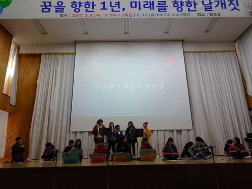 »çȸ½Ã°£¿¡ ¹è¿î ³»¿ëÀ» ÀÎÅÍºä ¿¬±ØÀ¸·Î ¸¸µé¾î ¹ßÇ¥Çϰí(5Çгâ)ÇнÀÇÑ ³»¿ëÀ» ÄûÁî·Î ¹ßÇ¥ÇÏ¿© °ü°´°úÀÇ ¼ÒÅëÀ» ½ÃµµÇÏ´Â Çлýµé¿¡ ´ëÇÑ ¹ÝÀÀµµ ¶ß°Å¿ü´Ù. Æò¼Ò À½¾Ç½Ã°£¿¡ °°Àº ¹Ý ¸ðµç Ä£±¸¿Í È­À½À» ¸¸µé¾î³½ ¸®µë¾Ç±â ÇÕÁÖ¿Í °í¿î ¸ñ¼Ò¸®·Î ¿ì¸® ¹ÝÀÌ ÇÔ²² ÇÑ ¸ñ¼Ò¸®·Î ºÎ¸¥ µ¿¿ä ¸Þµé¸®(3Çгâ)µµ °¨µ¿À» ÀھƳ´Ù.