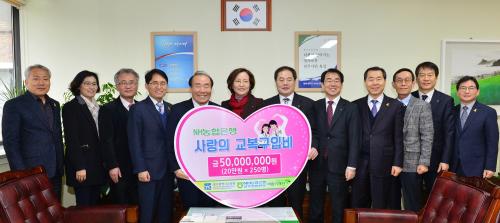 ½Ã±³À°Ã» °ü°èÀÚ´Â ¡°4³â° À̾îÁö´Â NH³óÇùÀºÇàÀÇ ³ª´® Ȱµ¿Àº Àú¼ÒµæÃþ ÇлýµéÀÇ ±³º¹±¸ÀÔºñ ºÎ´ãÀ» ÁÙ¿©Áִµ¥ Å« µµ¿òÀÌ µÇ°í ÀÖ´Ù¡±¸ç ¡°´õºÒ¾î »ì¾Æ°¡´Â ±³À°°øµ¿Ã¼¸¦ ½ÇÇöÇϱâ À§ÇÑ Áö¿ª»çȸÀÇ ±âºÎȰµ¿ÀÌ ¿ì¸® Çлýµé¿¡°Ô Èñ¸ÁÀÇ ºÒ¾¾°¡ µÇ±â¸¦ ¹Ù¶ó°í ¾ÕÀ¸·Îµµ ¿ì¸® ±³À°Ã»Àº Áö¿ª»çȸ¿Í ÇÔ²² ±âºÎ¹®È¸¦ Ȱ¼ºÈÇϱâ À§ÇÑ ³ë·ÂÀ» ²ÙÁØÈ÷ ÀÌ¾î ³ª°¡°Ú´Ù¡±°í ¸»Çß´Ù.