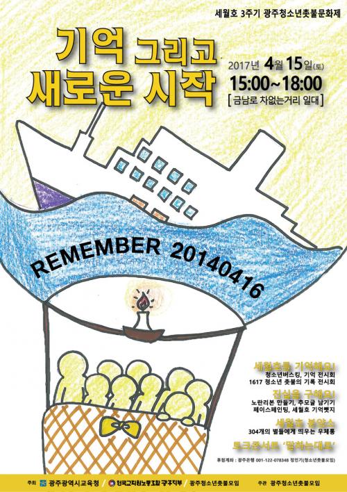 ±¤ÁÖ±¤¿ª½Ã±³À°Ã»(±³À°°¨ ÀåÈÖ±¹)ÀÌ ¼¼¿ùÈ£ Âü»ç 3ÁÖ±â Ã߸𸦠À§ÇØ ¡®±â¾ï, ±×¸®°í »õ·Î¿î ½ÃÀÛ¡¯À» ÁÖÁ¦·Î ¡®±¤ÁÖû¼Ò³âÃкҹ®È­Á¦¡¯¸¦ ¿À´Â 15ÀÏ ¿ÀÈÄ 2½ÃºÎÅÍ ±Ý³²·Î Â÷ ¾ø´Â °Å¸®¿¡¼­ °³ÃÖÇÑ´Ù.