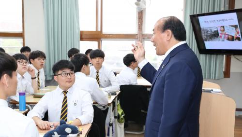 ÀåÈÖ±¹ ±¤Áֽñ³À°°¨Àº, Á¦57ÁÖ³â 4.19Çõ¸í ±â³äÀÏÀ» ÇÏ·ç ¾ÕµÐ 18ÀÏ(È­) ¿ÀÀü 10½Ã50ºÐ ¸ð±³ÀÎ ±¤ÁÖ°íµîÇб³(±³Àå ÀÌ¿µÈ£) 2-4¹Ý ÇлýµéÀ» ´ë»óÀ¸·Î Ưº°°è±â¼ö¾÷À» ÁøÇàÇß´Ù.