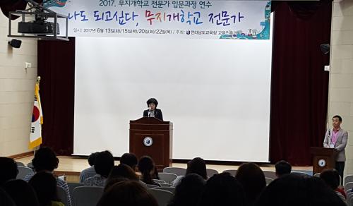 ÀÌ¿ë´ö ±³À°ÁøÈï°úÀåÀº ¡°À̹ø ¿¬¼ö´Â ±³À°Ã» ÁÖµµÀÇ ÀϹæÀû ¿¬¼ö¿¡¼ ¹þ¾î³ª Çб³ ÇöÀå ±³»çµéÀÌ ±âȹÇÏ°í ±³À°Ã»ÀÌ Áö¿øÇÏ´Â »õ·Î¿î Çü½ÄÀÇ ¿¬¼ö·Î¼ Àǹ̰¡ ÀÖ´Ù¡±¸ç ¡°¹«Áö°³Çб³ ±³»çµéÀÇ »ó»ó·ÂÀ¸·Î Àü³² ±³À°ÀÇ ¹Ì·¡¸¦ »ó»óÇÏ°í »õ·Ó°Ô ²Þ²Ù±æ ¹Ù¶õ´Ù¡±°í ¸»Çß´Ù.