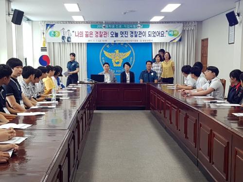 À̹ø Çà»ç´Â °æÂû°ø¹«¿øÀ» Èñ¸ÁÇÏ´Â ÁßÇб³ 3Çгâ ÇлýÀ» ´ë»óÀ¸·Î ²Þ°ú ³¢¸¦ Ž»öÇÒ ¼ö ÀÖ´Â Áø·ÎŽ»öÀÇ ±âȸ¸¦ Á¦°øÇϱâ À§ÇØ¡¸°æÂûÁ÷¾÷ ¼Ò°³¡¹¡¸°æÂû°üÀÇ ¿ªÇÒ¡¹¡¸°æÂû¹«µµ üÇ衹¡¸112Á¾ÇÕ»óȲ½Ç ü°è¡¹¡¸°æÂûüÇè ¼Ò°¨¹ßÇ¥¡¹¡¸Çб³Æø·Â ±ÙÀý Ư°¡¹¡¸À̼öÁõ ¼ö¿©¡¹µîÀÇ ¼øÀ¸·Î ÁøÇàµÆ´Ù.