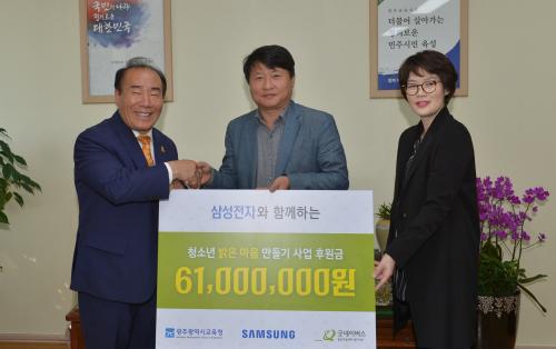 »ï¼ºÀüÀÚ ±¤ÁÖ»çȸ°øÇå¼¾ÅÍ´Â À̳¯ Àü´Þ½Ä¿¡¼ û¼Ò³âÀ» À§ÇÑ ÈÄ¿ø±Ý 6100¸¸ ¿øÀ» ±¤Áֽñ³À°Ã»°ú ±Â³×À̹ö½º¿¡ Àü´ÞÇß´Ù.