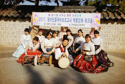 Àü¶ó³²µµ¼øÃµ±³À°Áö¿øÃ»(±³À°Àå À±Á¾½Ä)Àº 10¿ù 27ÀÏ(±Ý)ºÎÅÍ 28ÀÏ(Åä)±îÁö 1¹Ú2ÀÏ µ¿¾È ±º»ê±Ù´ë¿ª»ç¹Ú¹°°ü ¹× ÀüÁÖÇÑ¿Á¸¶À»¿¡¼ ´ë¸¸ ¿ø¾î¹Îº¸Á¶±³»ç ¿ª·® °È ¿öÅ©¼óÀ» ½Ç½ÃÇÏ¿´´Ù.