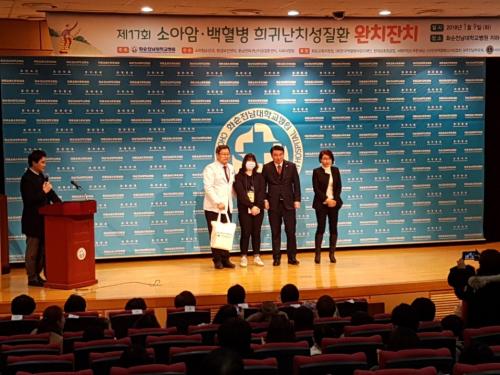 À̹ø ¡®Á¦17ȸ ¼Ò¾Æ¾Ï¡¤¹éÇ÷º´¡¤Èñ±Í³Ä¡¼ºÁúȯ ¿ÏÄ¡ÀÜÄ¡¡¯´Â ¼Ò¾Æ¾Ï¡¤¹éÇ÷º´¡¤Èñ±Í³Ä¡¼ºÁúȯ¾Æµé Áß Ç×¾ÏÄ¡·á¸¦ Á¾·áÇÏ°í ¿ÏÄ¡ÆÇÁ¤À» ¹ÞÀº 40¸íÀÇ È¯¾ÆµéÀ» ÃàÇÏÇϱâ À§ÇÑ Çà»ç·Î ȯ¾Æ¿Í °¡Á·µé, º´¿ø°ú ±³À°Áö¿øÃ» ¹× Çб³ °ü°èÀÚ, ÈÄ¿ø´Üü µî ¿©·¯ °÷¿¡¼ Çà»ç¿¡ Âü¼®ÇÏ¿© ÇÔ²² ±â»µÇϰí ÃàÇÏÇÏ´Â ÀÚ¸®°¡ µÇ¾ú´Ù.