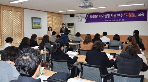 ±¤ÁÖ±¤¿ª½Ãµ¿ºÎ±³À°Áö¿øÃ»(±³À°Àå ÀÌÁ¾½Ä)ÀÌ 18ÀϺÎÅÍ 19ÀϱîÁö ÀÌÆ²°£ °ü³» À¯¡¤ÃÊ‧ÁßÇб³ ÇàÁ¤Á÷¿ø 80¿© ¸íÀ» ´ë»óÀ¸·Î ÇöÀåÁ᫐ Çб³ÇàÁ¤ Áö¿ø ¿¬¼öÀÎ ¡®µðµõµ¹¡¯ ±³À° 1Â÷ °úÁ¤À» ½Ç½ÃÇÑ´Ù.