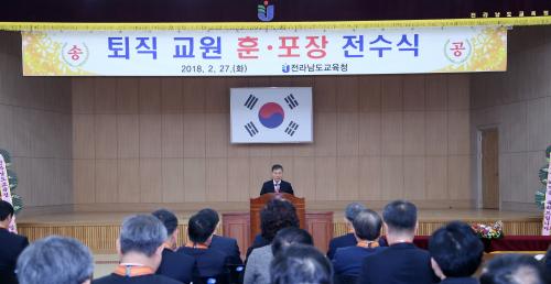 Àü¶ó³²µµ±³À°Ã»(±³À°°¨ À常ä)Àº 27ÀÏ(È­) ¿ÀÀü 10½Ã º»Ã» ´ëȸÀǽǿ¡¼­ 2018³â 2¿ù¸» ÅðÁ÷±³¿ø ÈÆ¡¤Æ÷Àå Àü¼ö½ÄÀ» °³ÃÖÇß´Ù.