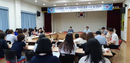1±³½Ã ¼ö¾÷ Âü°ü ÈÄ ÁøÇàµÈ Çкθ𠰣´ãȸ¿¡¼ 2018Çг⵵ ȼø¿µÀç±³À°¿ø ±³À° ÇöȲ ¹× ¾ÕÀ¸·Î ÁøÇà µÉ ±³À°¿¡ ´ëÇÑ ¾È³»¿Í Çкθð´ÔµéÀÇ ´Ù¾çÇÑ ÀǰßÀ» ÀÚÀ¯·Ó°Ô À̾߱âÇÏ´Â ±âȸÀÇ ÀåÀÌ ¸¶·ÃµÇ¾ú´Ù.